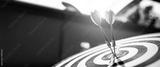 Bullseye or Bulls eye target or dartboard has dart arrow throw hitting the center of a shooting for financial business targeting planning and aim to winner goal of business concept.