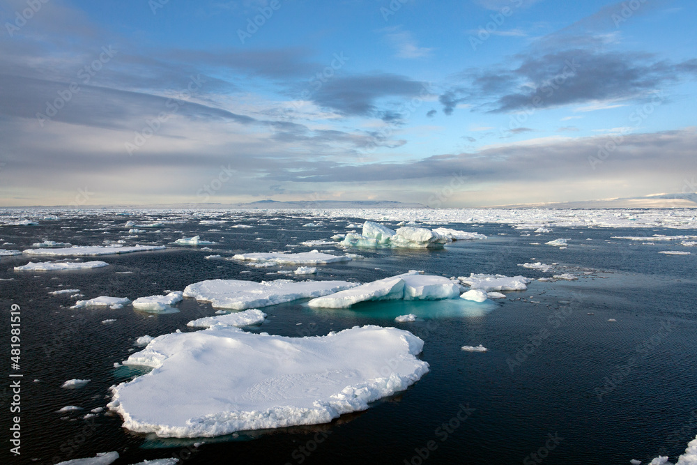 Sea ice in the North Atlantic Ocean off the northeast coast of Greenland.