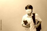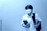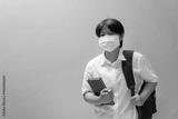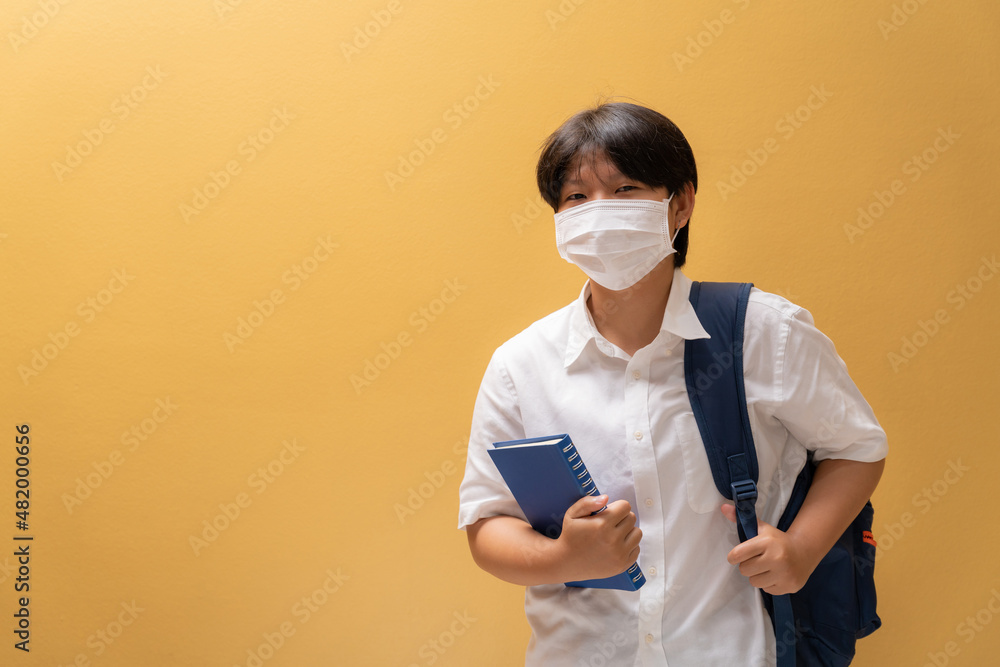 Asian girl giving wear a protective mask with learning equipment in student uniform, Education concept and prevention of the spread of corona virus.