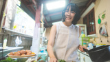 Happy young adult asian woman leisure with cooking in kitchen on day.
