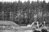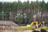 Construction site digger yellow during excavation on building site