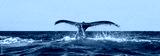 A Humpback whale raises its powerful tail over the water of the Ocean. The whale is spraying water. Scientific name: Megaptera novaeangliae. South Africa.