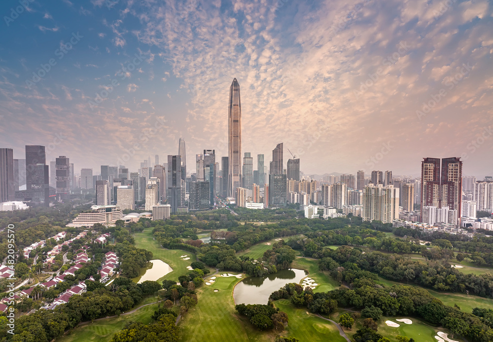 Shenzhen city central business district,aerial panorama China.