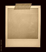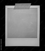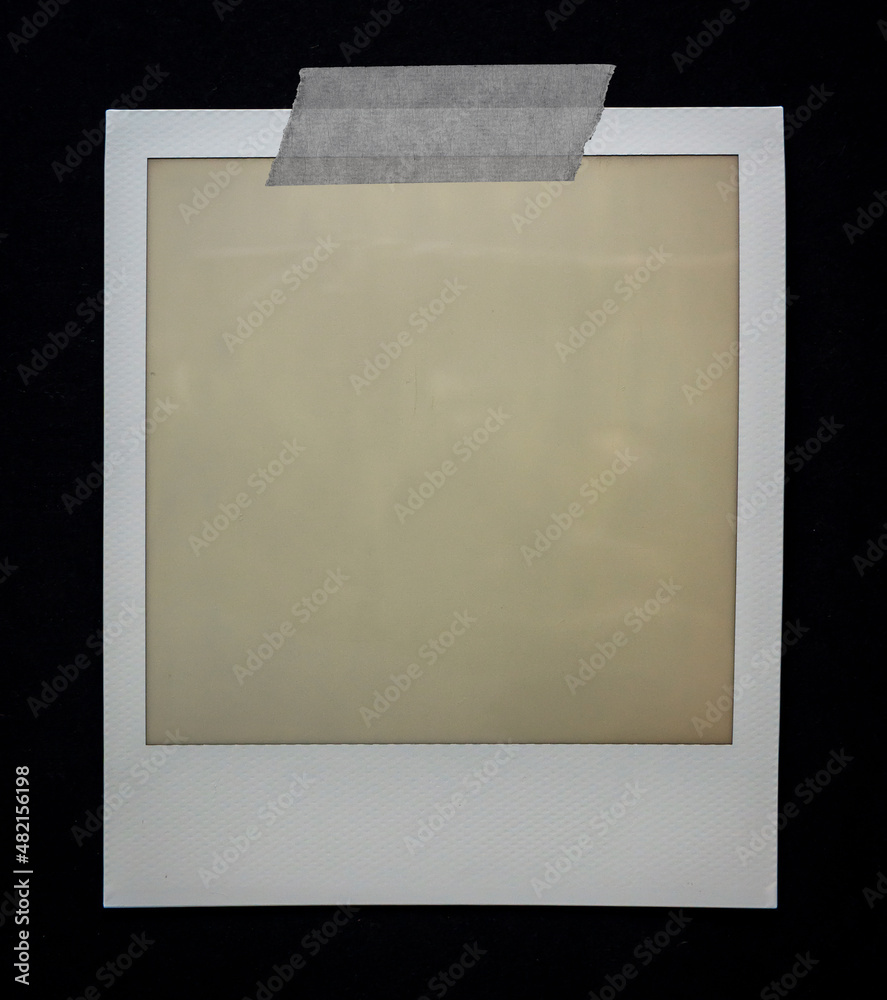 empty or blank instant film frame on black background fixed by single paper sticker. nice photo placeholder.