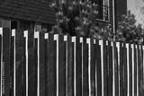 Modern fence made of bars (pillars) of gray, mountain, Silesian slate.