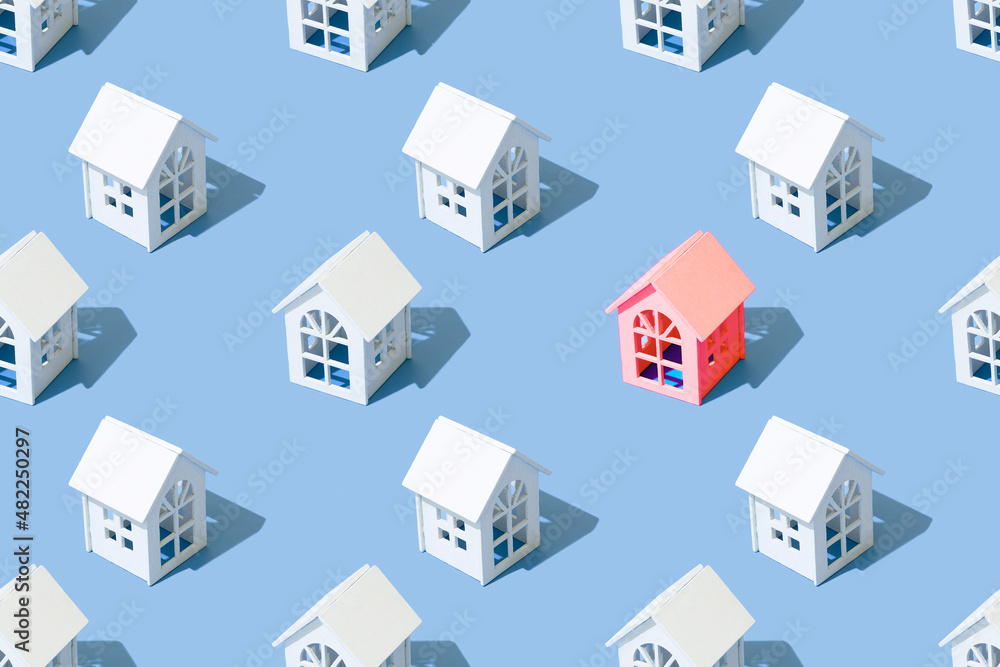 Conceptual seamless pattern of white houses.