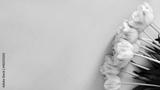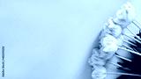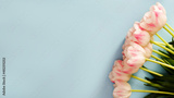 A beautiful bouquet of delicate pink tulips on a blue background with space for your text