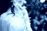 beautiful young girl in a light dress on the background of a blooming garden. close up