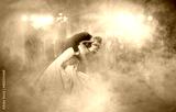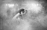 first dance - Elegant wedding by night. Groom kisses the bride in a waltz