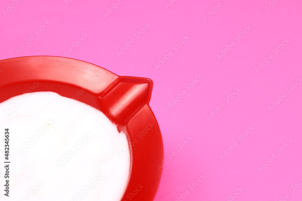 hair dye in a plastic bowl, hair coloring at home or in a beauty salon