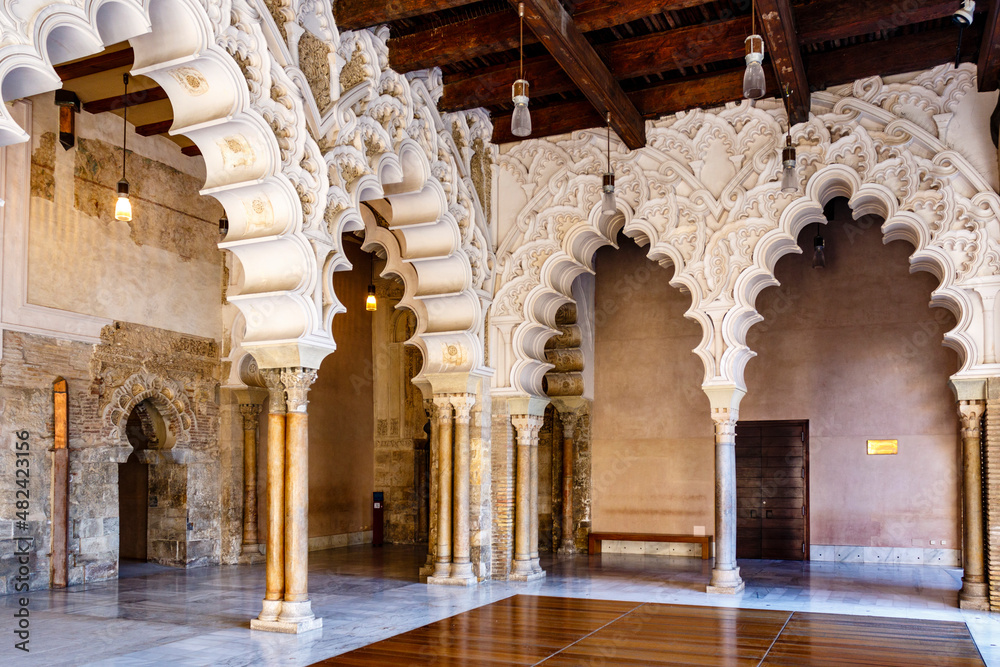 The Moorish-Taifa north side halls, Aljaferia Palace, Zaragoza, Aragon, Spain, Europe