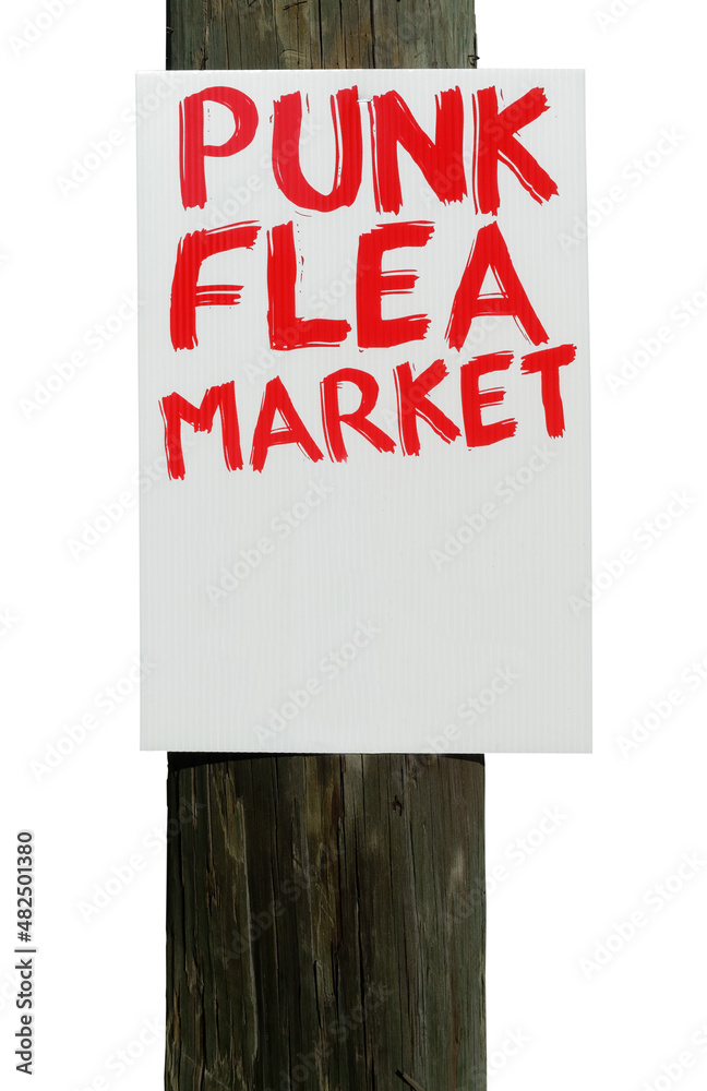 FLEA MARKET sign mounted on telephone pole. Isolated.