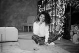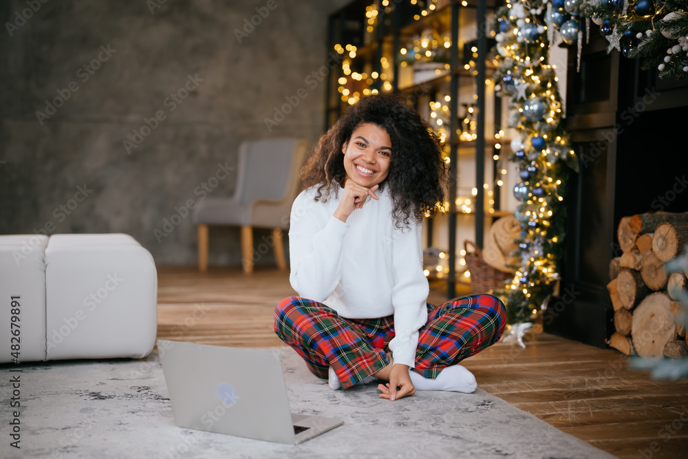 Beautiful young african american woman on the floor