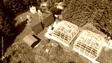 Science station greenhouse drone aerial open top chambers climate change research Bily Kriz, plant spruce Picea abies Norway European and mountain beech Fagus sylvatica common for scientific