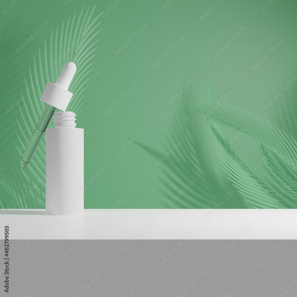 skin care serum cosmetic bottle, 3d rendering illustration mockup, medical lotion product