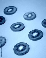 sliced kiwi on orange background