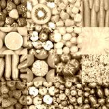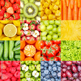 Collection of fruits and vegetables fruit collage background with berries apples and carrots square