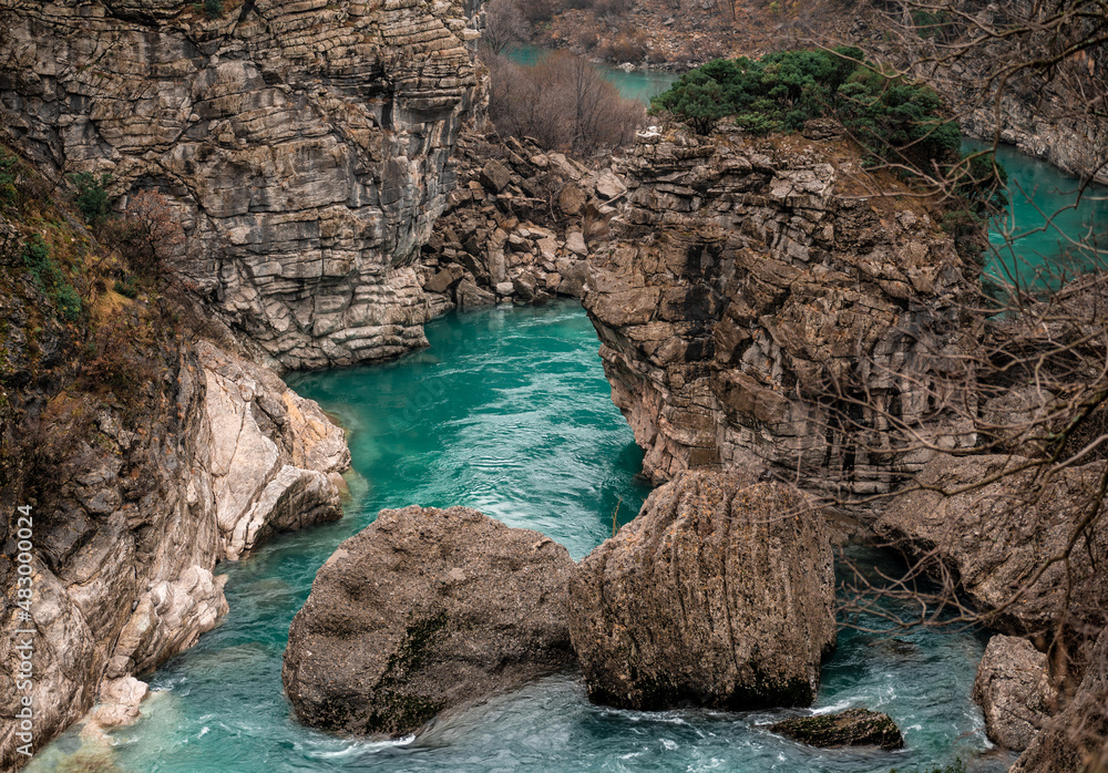 River Moraca, canyon Platije. montenegro, canyon, mountain road. Picturesque journey, beautiful mountain turquoise river