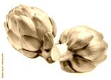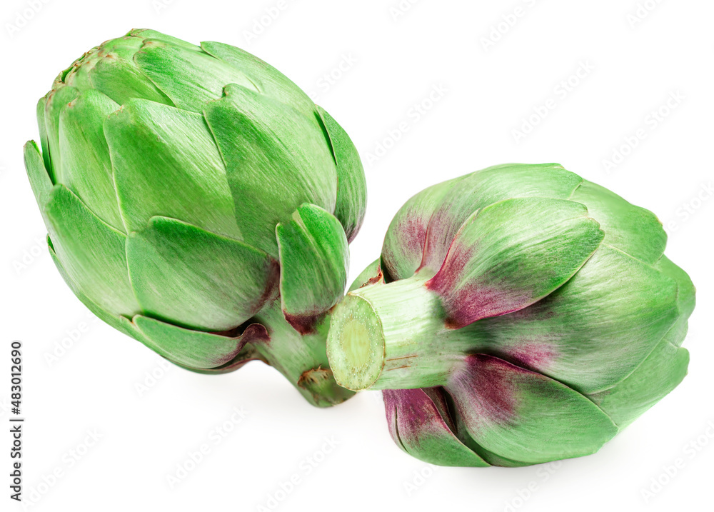 Two Fresh Artichokes isolated on white background. Raw Artichok closeup