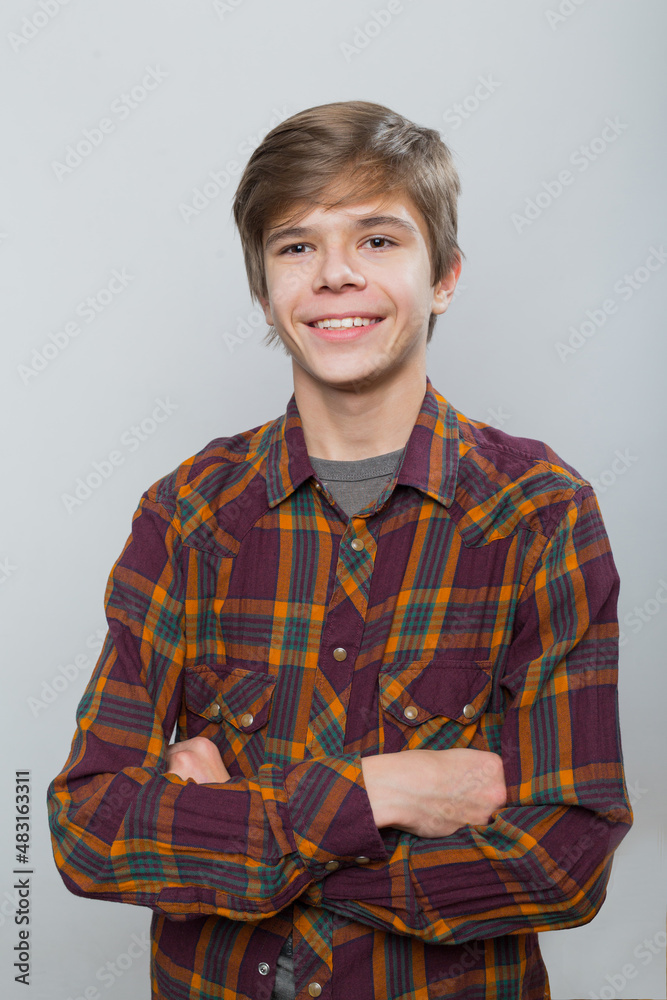 Emotional portrait of a teenager in a plaid shirt