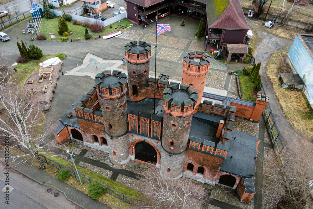 Friedrichsburg gate in Kaliningrad, built in 1852 as part of fortress top view, aerial view