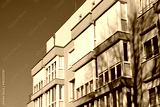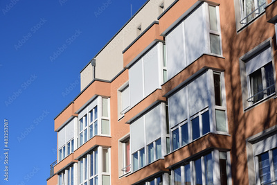 Detailed shot of a residential building in the city against a blue sky in Germany