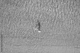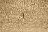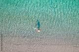 Top view. Young beautiful naked woman in a hat taking off bikini in sea water. Drone, copter photo. Summer vacation. View from above.