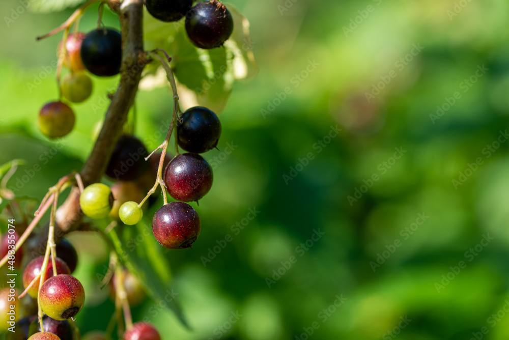 Owocująca porzeczka czarna, zdrowe rośliny. Ribes nigrum.