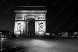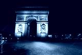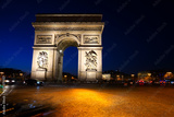 Night view of the Arc de Triomphe, a landmark monument on Place de l'Etoile and the Champs-Elysees in Paris, France.