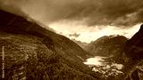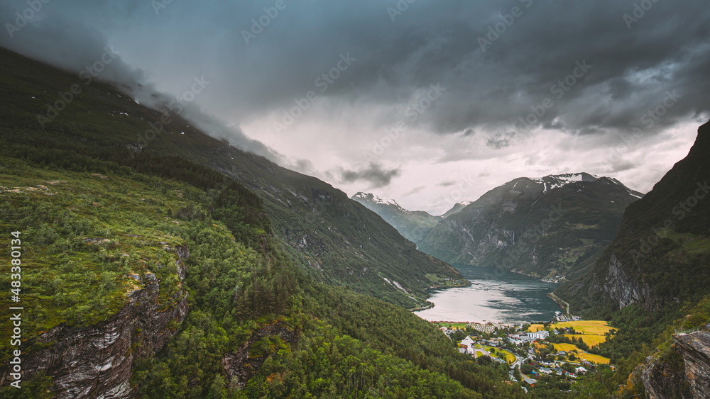 Geirangerfjord, Norway - Geiranger In Geirangerfjorden In Sunny Summer Day. Famous Norwegian Landmark And Popular Destination. .