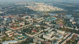 Gomel, . Aerial View Of Bird's-eye View, Flight Above Homiel. Circus, Sovetskaya Street, Residential Districts, Downtowns. Traffic On Streets.Gomel, . Aerial View Of Bird's-eye View, Flight Above
