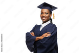 education, graduation and people concept - happy graduate student woman in mortarboard and bachelor gown