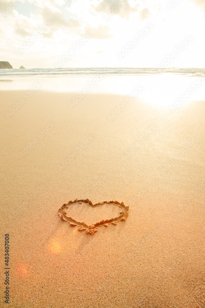 Ein Herz in den Sand gemalt