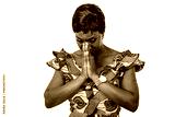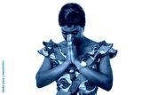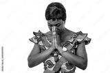 beautiful adult business woman is praying with hands together.