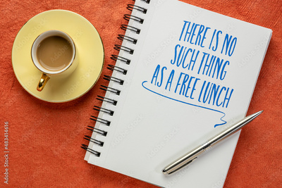 there is no such thing as a free lunch warning, handwriting in a notebook with coffee