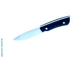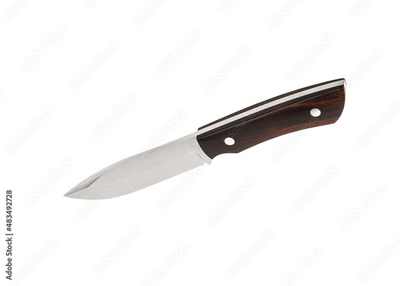 Modern hunting knife with silver blade and rubber handle. Steel arms. Isolate on a white back