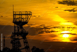 A headframe in a coal mine at sunrise. Katowice, Poland