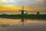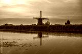 Old dutch windmill at sunset in Kinderdijk, Netherlands