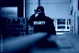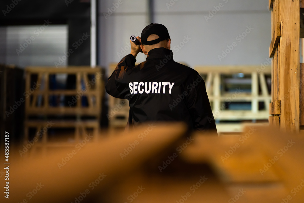 Security Guard Walking Building Perimeter With Flashlight