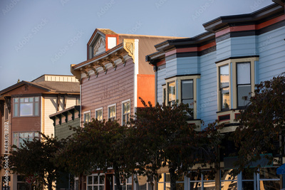 Arcata, California, USA - November 22, 2021: Morning light illuminates beautiful historic downtown Arcata.