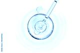 water miracle bubble or cosmetic liquid serum drops with laboratory glass pipette and ripple wave suface abstract background. Beauty and skincare