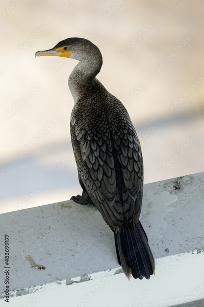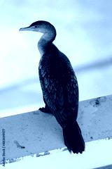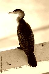 Double-crested Cormorant perched on San Francisco-Oakland Bay Bridge Construction Frame.