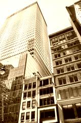Retro toned picture of Manhattan diverse architecture, New York City, USA.