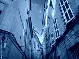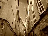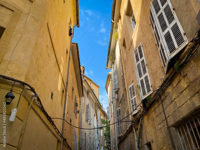 Typical colorful buildings of an old city street of Aix en Provence, France