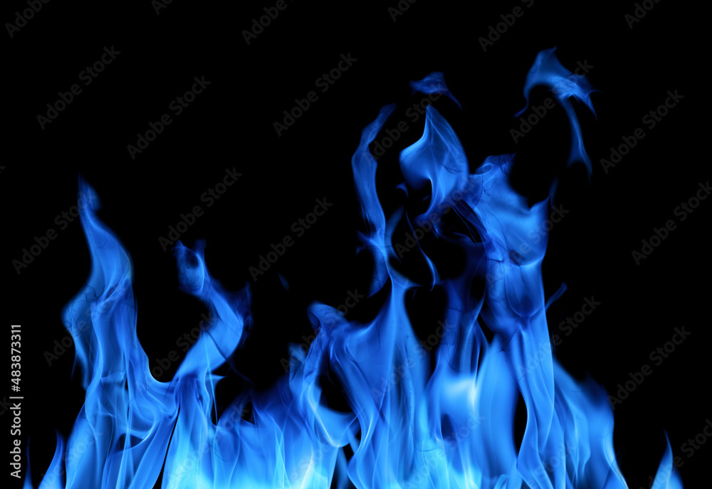 blue flame hot sparks isolated on black