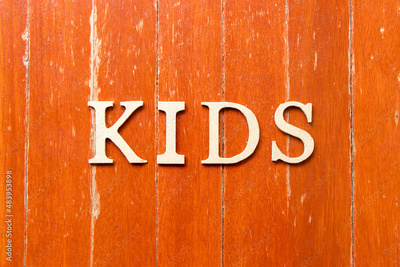 Alphabet letter in word kids on old red color wood plate background