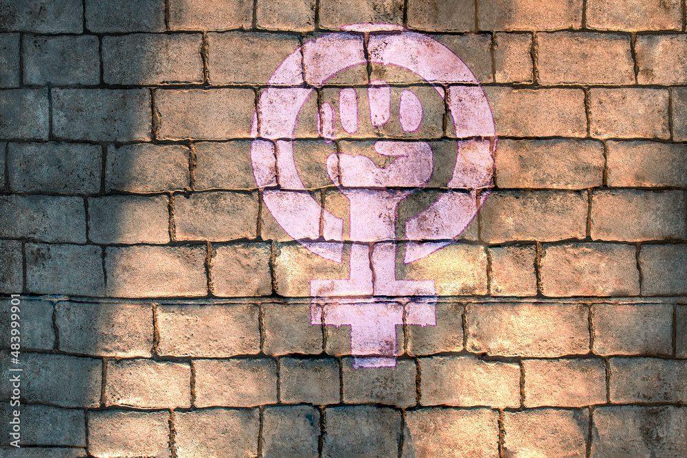 A drawing of strong fist raised up with woman gender with copy space aside.