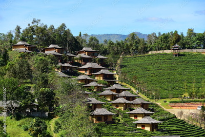 Village view in the forest area and fresh green mountains. There is nature in Thailand.