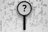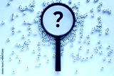 Questions and answers concept. Alphabet beads with magnifying glass with question symbol in it on white background.