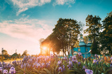 Staraya Belitsa, Uritskiy Sel'sovet , Gomel Region, Belarus. Old Wooden Orthodox Church Of St Nicholas The Wonderworker During Summer Sunset Sunrise. Orthodox Church Of St. Nikolaya Chudotvortsa.